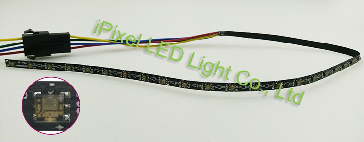 We developed this slim led strip,4mm width 30pcs APA2020,totally flexible but IP20 as the brightness quite high based on very thin PCB,it getting a little bit hot,make sure you will hold the strip on somewhere which could lose the heat,never use static white color each LED addressable but not cut-able the soldering pad on front side is Data and clock, back side of PCB DC5V &GND Each pcs stripe we soldering a JST SM 4 Pin male connector as input ,cable size 26AWG.