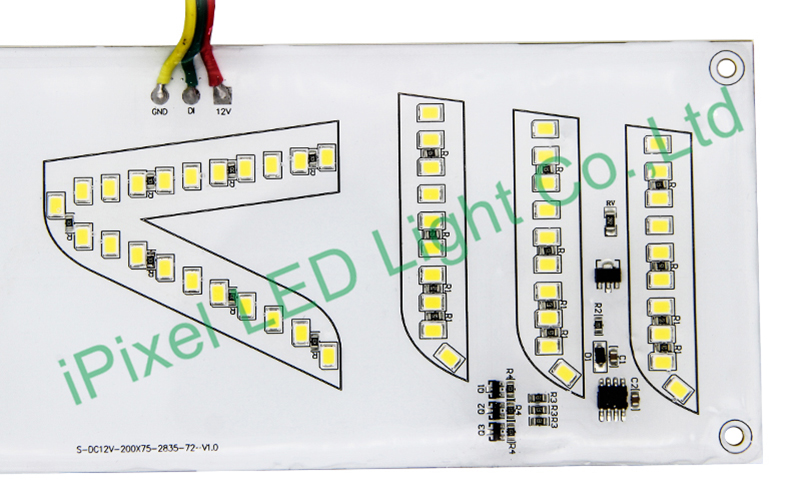 Our customer customized a 200x75mm single color rigid panel, details pls see below: Internal Code:10601-0017-00 Part Number :M075072BB1PR LED chip: single color 2835 , W: 6000-6500K Led quantity: 72leds/pcs Voltage: DC12V Power: 3W PCB size: 200*75mm PCB color: White PCB